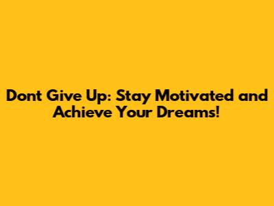 Hey guys! Ever felt like throwing in the towel? Like that dream you've been chasing is just too far out of reach? We've all been there. Life throws curveballs, and sometimes it feels like you're constantly battling uphill. But here's the thing: don't give up! It's easier said than done, I know, but holding onto that inner spark of motivation is key to unlocking your potential and achieving those goals you've set for yourself. This isn't just some fluffy, feel-good pep talk; it's a reminder of the incredible strength you already possess. It's about reigniting that fire within you and pushing forward, even when the going gets tough. We're going to dive deep into why giving up is never the answer and how to cultivate that unshakeable 'never give up' attitude. So buckle up, because we're about to embark on a journey of self-discovery and unwavering motivation!