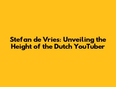 Stefan De Vries: Unveiling The Height Of The Dutch YouTuber