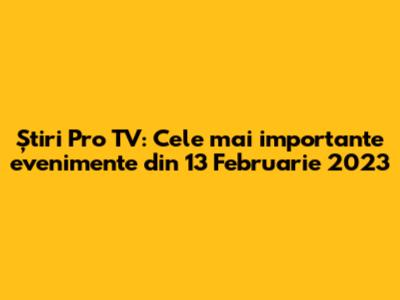 Știri Pro TV: Cele Mai Importante Evenimente Din 13 Februarie 2023