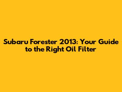 Subaru Forester 2013: Your Guide To The Right Oil Filter