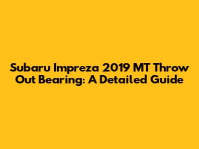 Hey guys! Let's dive into a common issue faced by many Subaru Impreza 2019 owners with a manual transmission – the dreaded throw out bearing. If you've been hearing some unusual noises or experiencing clutch issues, this might be the culprit. We'll break down everything you need to know about the throw out bearing, from symptoms to replacement.