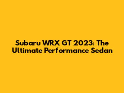 Subaru WRX GT 2023: The Ultimate Performance Sedan