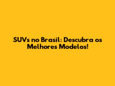 SUVs No Brasil: Descubra Os Melhores Modelos!