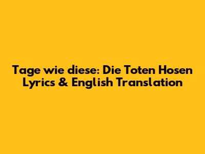 Tage Wie Diese: Die Toten Hosen Lyrics & English Translation