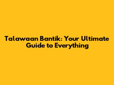 Talawaan Bantik: A Comprehensive Guide