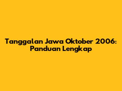 Tanggalan Jawa Oktober 2006: Rincian Hari demi Hari