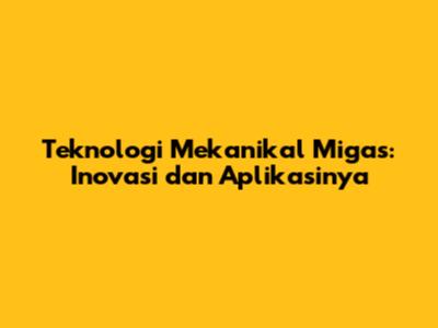Teknologi Mekanikal Migas: Inovasi Dan Aplikasinya
