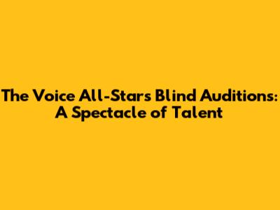 The Voice All-Stars Blind Auditions: A Spectacle Of Talent