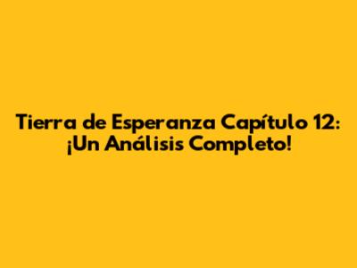 Después de todos los giros y revelaciones del Capítulo 12, ¿qué podemos esperar para el futuro de Tierra de Esperanza? Es hora de hacer algunas predicciones. Creo que... (haga una predicción sobre el futuro de un personaje o una relación). Esta predicción se basa en... (explique las razones detrás de su predicción). Es importante analizar las pistas y los indicios que nos da el capítulo para hacer predicciones precisas. Además, creo que... (haga otra predicción). Esta predicción se basa en... (explique las razones detrás de su predicción). Es fundamental analizar las relaciones entre los personajes, los conflictos existentes y los posibles giros argumentales. También creo que... (haga otra predicción). Esta predicción se basa en... (explique las razones detrás de su predicción). Es importante considerar el desarrollo de la trama y las posibles consecuencias de las decisiones de los personajes. El futuro de Tierra de Esperanza está lleno de incertidumbre, pero también de emoción. Prepárense para descubrir los secretos y las sorpresas que nos depara el futuro. Las predicciones son solo el comienzo. El futuro de la historia está en manos de los guionistas y de los personajes. Prepárense para ser sorprendidos, emocionados y cautivados por los misterios que se revelarán en los próximos capítulos. ¡No se pierdan ni un solo detalle!