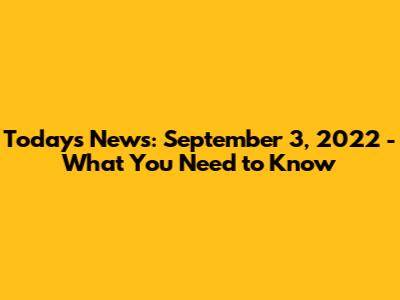 Today's News: September 3, 2022 - What You Need To Know