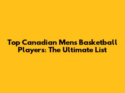 Top Canadian Men's Basketball Players: The Ultimate List