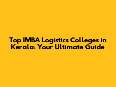 Top IMBA Logistics Colleges In Kerala: Your Guide