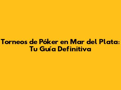 Torneos De Póker En Mar Del Plata: Guía Completa Para Jugadores