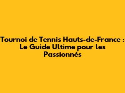Tournoi De Tennis Hauts-de-France : Guide Complet Pour Les Fans