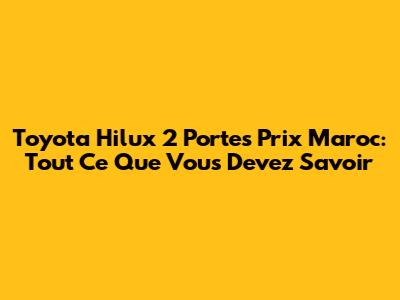 Hey les amis! Si vous êtes à la recherche d'un pick-up robuste et fiable, le Toyota Hilux 2 portes pourrait bien être votre prochain meilleur pote. Surtout si vous êtes au Maroc, où ce genre de véhicule est super populaire pour sa capacité à affronter les terrains les plus difficiles. On va décortiquer ensemble tout ce qu'il faut savoir sur le prix du Hilux 2 portes au Maroc, les différentes versions disponibles, et pourquoi il est tant apprécié. Préparez-vous, ça va être passionnant!