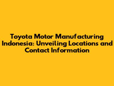 Toyota Motor Manufacturing Indonesia: Location & Contact Info