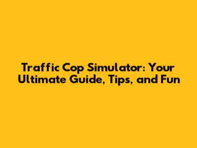 Traffic Cop Simulator: Guide, Tips, And Fun