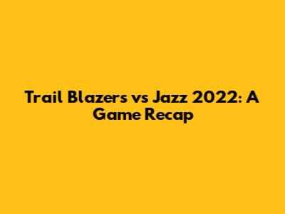 Trail Blazers Vs Jazz 2022: A Game Recap