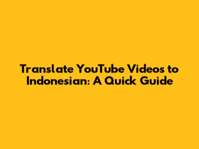 Translate YouTube Videos To Indonesian: A Quick Guide