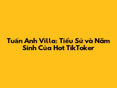 Tuấn Anh Villa: Tiểu Sử Và Năm Sinh Của Hot TikToker