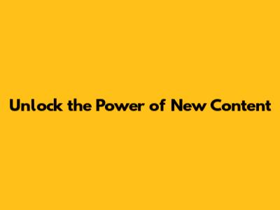 Unlock The Power Of New Content