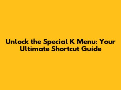 Unlock The Special K Menu: Your Ultimate Shortcut Guide