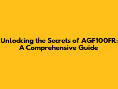 Unlocking The Secrets Of AGF100FR: A Comprehensive Guide