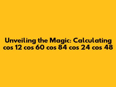 Hey math enthusiasts! Ever stumbled upon a seemingly complex trigonometric problem and thought, "Whoa, where do I even begin?" Well, fear not, because today we're diving headfirst into an intriguing calculation involving cosines: cos 12° cos 60° cos 84° cos 24° cos 48°. This might look intimidating at first glance, but trust me, with a few clever tricks up our sleeves, we can break it down and reveal its hidden beauty. We're not just crunching numbers; we're embarking on a mini-adventure into the world of trigonometry, exploring identities, and discovering the elegance of mathematical relationships. Buckle up, and let's unravel this cosine puzzle together! Our goal is to find the product of these cosine values, a classic example of how trigonometric identities can simplify seemingly difficult expressions. Let's get started, shall we?