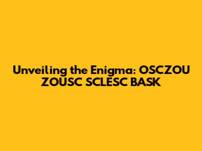 Unlocking The Secrets Of OSCZOU ZOUSC SCLESC BASK