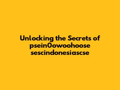 Unlocking The Secrets Of Psein0owoohoose Sescindonesiascse