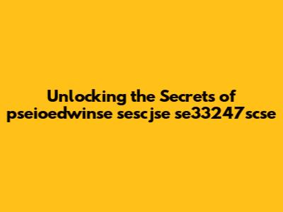 Unlocking The Secrets Of Pseioedwinse Sescjse Se33247scse