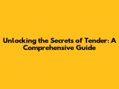Unlocking The Secrets Of Tender: A Comprehensive Guide