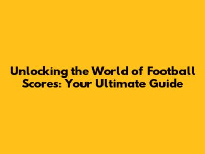 Unlocking The World Of Football Scores: Your Ultimate Guide
