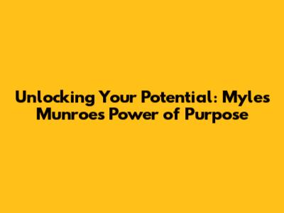 Unlocking Your Potential: Myles Munroe's Power Of Purpose