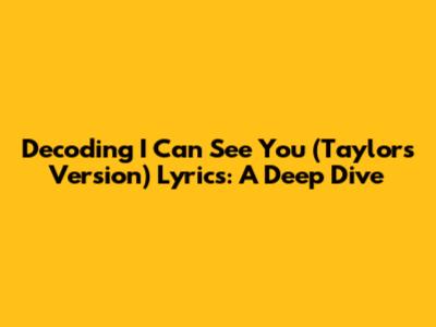 Hey Swifties, let's dive headfirst into the world of Taylor Swift and dissect the lyrics of "I Can See You (Taylor's Version)". This song, a vault track, gives us a sneak peek into Taylor's songwriting brilliance. Get ready for a deep dive, as we break down the meaning, the possible inspirations, and the overall vibe of this captivating track. The release of "I Can See You (Taylor's Version)" is a reminder of Taylor's commitment to reclaiming her masters and sharing her artistry with the world on her own terms. The song, along with other vault tracks, offers listeners a unique insight into Taylor's creative process and her ability to evoke strong emotions through her songwriting. This track is more than just a song; it's a narrative, a journey through feelings, and a testament to Taylor's growth as an artist. Let's start with a look at the opening lines and how they set the tone for the rest of the song, examining the storytelling that makes her songs so relatable and unforgettable. The lyrics of "I Can See You" are filled with evocative imagery and emotional depth, reflecting on themes of longing, memory, and the search for connection. The song creates an atmosphere of introspection, drawing listeners into Taylor's emotional landscape and allowing them to connect with their own experiences of love, loss, and self-discovery. This particular song is a journey through time and emotions. Now, let's move on to the different parts of the song and uncover what this amazing song is really all about.