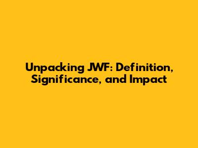 Unpacking JWF: Definition, Significance, And Impact
