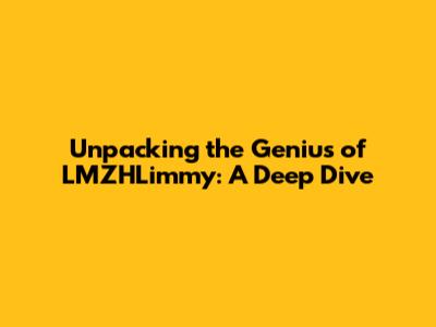 Unpacking The Genius Of LMZHLimmy: A Deep Dive
