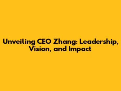 Unveiling CEO Zhang: Leadership, Vision, And Impact