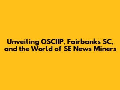 Unveiling OSCIIP, Fairbanks SC, And The World Of SE News Miners