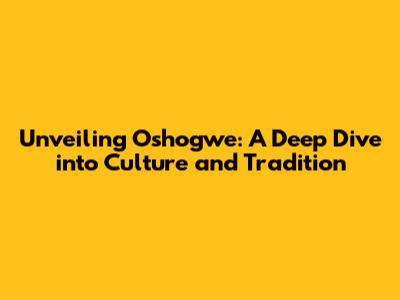 Unveiling Oshogwe: A Deep Dive Into Culture And Tradition