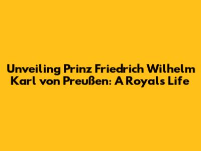 Unveiling Prinz Friedrich Wilhelm Karl Von Preußen: A Royal's Life