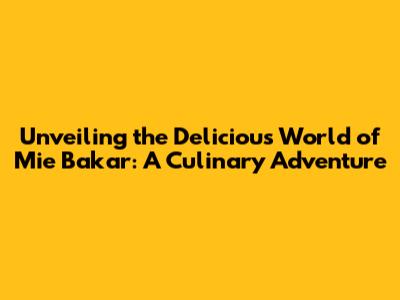 Unveiling The Delicious World Of Mie Bakar: A Culinary Adventure