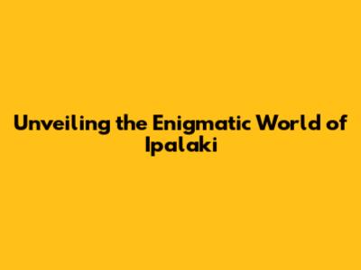Unveiling The Enigmatic World Of Ipalaki