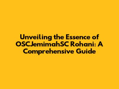 Unveiling The Essence Of OSCJemimahSC Rohani: A Comprehensive Guide