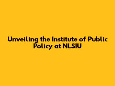 Unveiling The Institute Of Public Policy At NLSIU