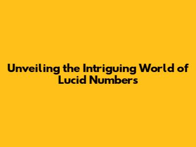 Unveiling The Intriguing World Of Lucid Numbers