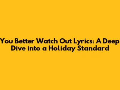 Hey guys, let's dive into a Christmas classic that gets everyone's attention, "You Better Watch Out." You've probably heard it a million times, maybe sung it at the top of your lungs, or even had it stuck in your head for days. But have you ever really thought about what the lyrics actually mean? This song, with its catchy melody and slightly ominous tone, has been a staple of the holiday season for generations. We're going to break down the lyrics, explore their origins, and maybe even uncover a few surprises along the way. So, buckle up, grab a cup of hot cocoa, and let's explore the You Better Watch Out original lyrics!
