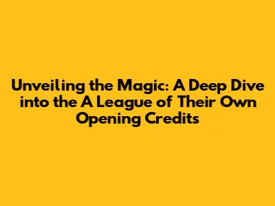 Unveiling The Magic: A Deep Dive Into *A League Of Their Own* Opening Credits