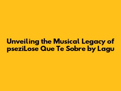 Unveiling The Musical Legacy Of 'pseziLose Que Te Sobre' By Lagu