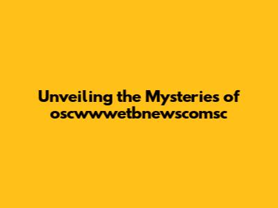 Unveiling The Mysteries Of Oscwwwetbnewscomsc